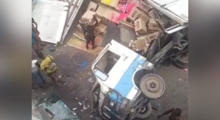 A major accident was averted on Saturday after a fully loaded six-tyre truck plunged off the Oshodi Bridge in Lagos, leaving one man severely injured. The truck, with registration number AKD 135 YK, w...