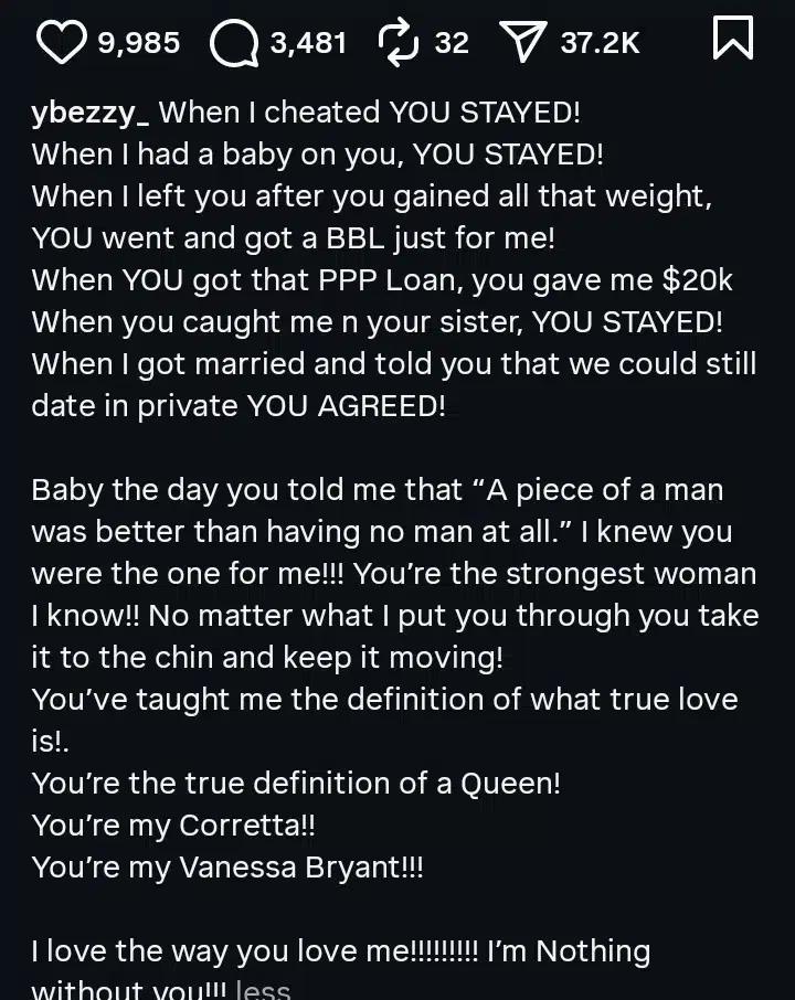 Meanwhile, an old Instagram post of Bezzy admitting to cheating on his fiancée has emerged online.